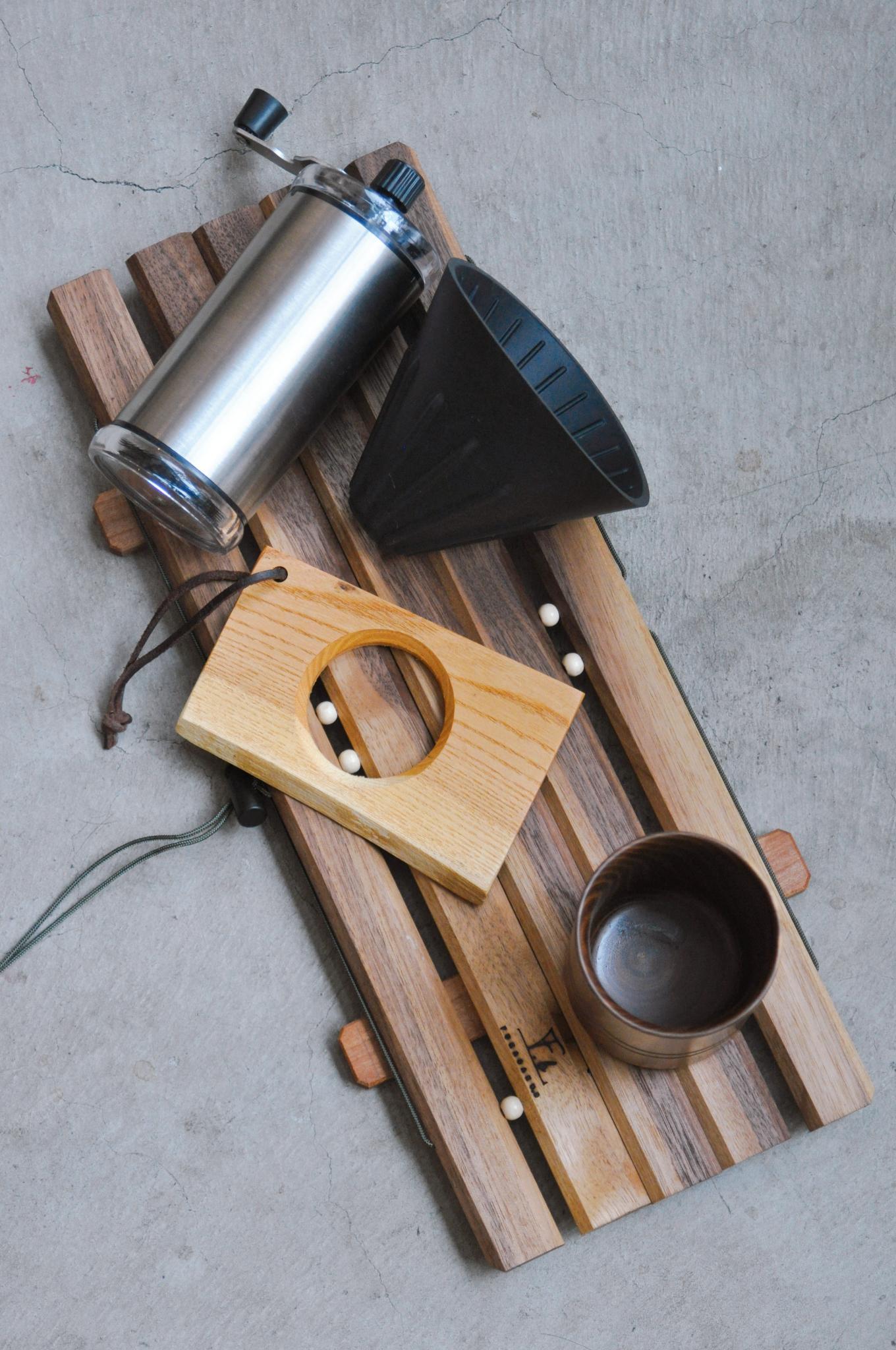 軽さ、薄さを追求するば自ずと、木製道具は避けられがちですが、やはり自然の中で感じる木の温もりや柔らかい趣は何物にも代えがたいのではないでしょうか。(今後、オーク材も商品化予定。)